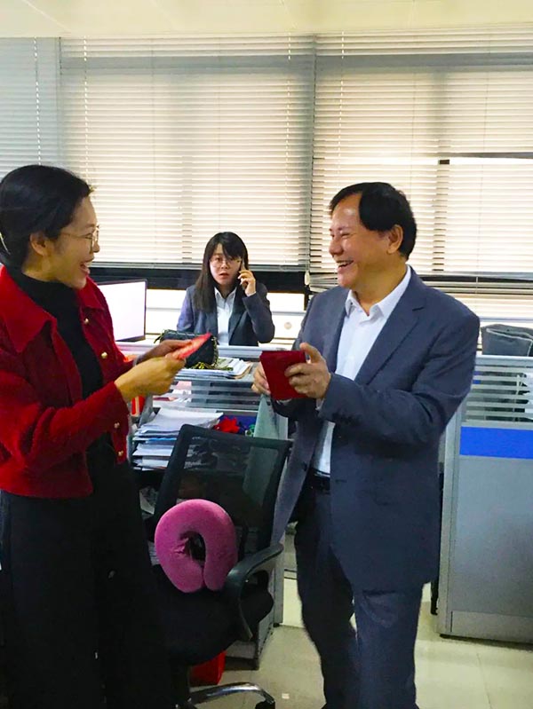 2024年2月19日,廣西翰林工程項目管理有限責任公司高層在董事長鄧德輝帶領下,給全體員工送上開年紅包和新年祝福,寓意著新的一年里,公司領導繼續與員工努力共創美好未來。